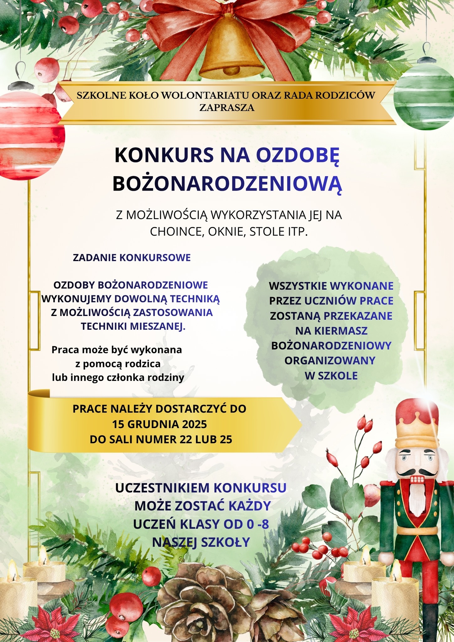 Szkolne Koło Wolontariatu i Rada Rodziców zachęcają do ...Czytaj więcejPrzejdź do pełnej zawartości artykułu: Konkurs na ozdobę bożonarodzeniową -