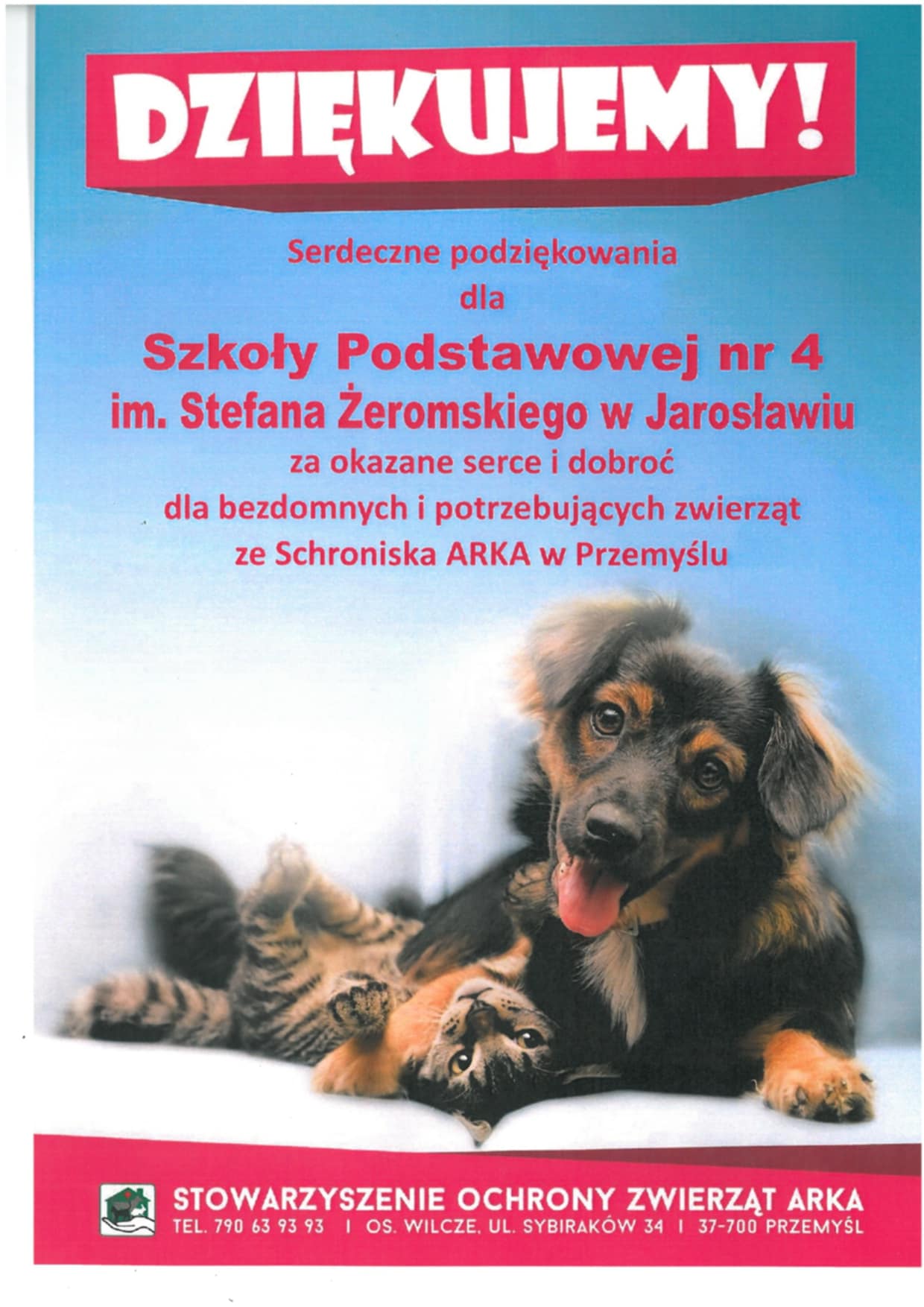 Stowarzyszenie Ochrony Zwierząt Arka serdecznie dziękuje za okazaną ...Czytaj więcejPrzejdź do pełnej zawartości artykułu: Podziękowanie od Stowarzyszenia Ochrony Zwierząt Arka -